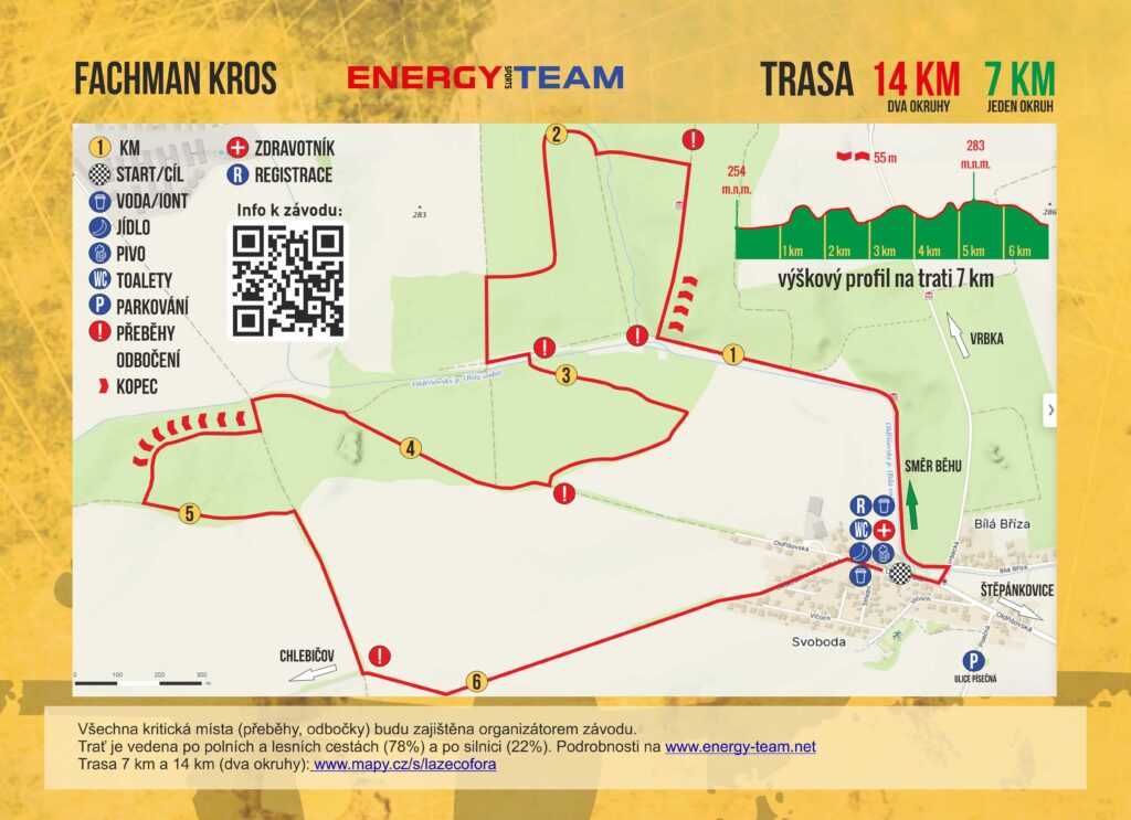 Běžecký závod a pochod se koná 21.9.2025.Hlavní závod startuje v 10:00 s kategoriemi 14 km a 7 km pro muže a ženy, dětské kategorie zahrnují běhy na 50 m, 500 m a 1500 m. Pochod na 8 km je otevřen pro všechny věkové kategorie. Registrace na místě končí 9:30 hod. pro běhy a 8:50 hod. pro pochod.